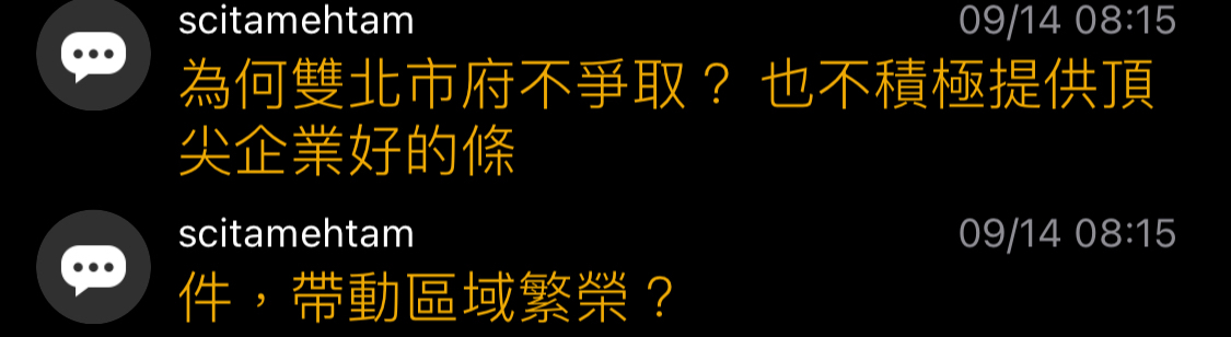→ scitamehtam: 為何雙北市府不爭取? 也不積極提供頂尖企業好的條 09/14 08:15