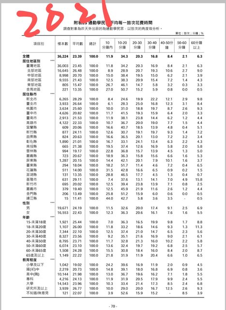 : 網路找到的各國通勤時間整理