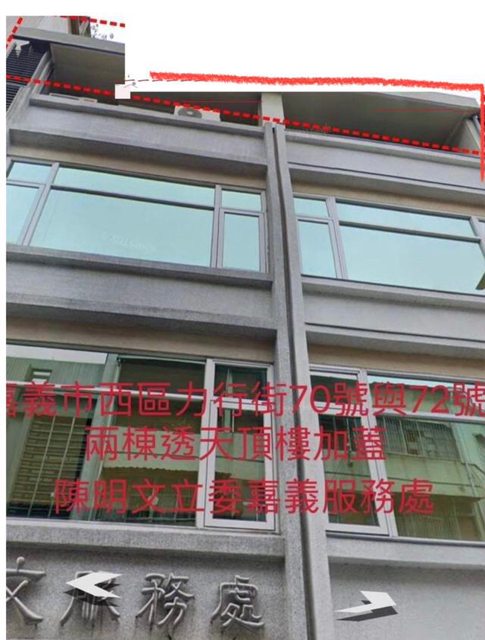 文住家,坐落於嘉義市西區的住處、服務處等建物,疑似違反《建築法》第25條第1項規