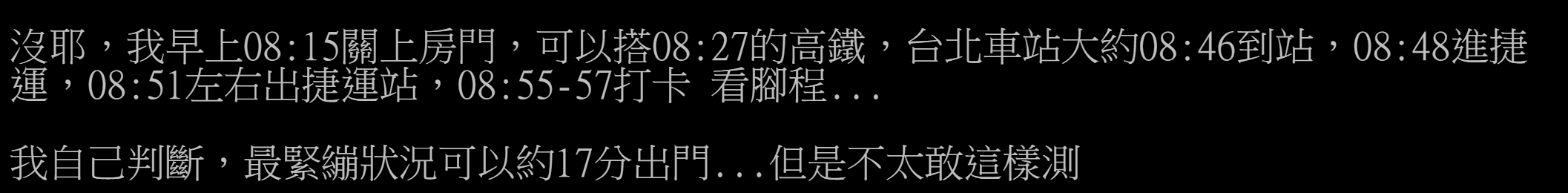 推 coonash: 算這麼久還算錯,我要哭了,青埔到台北一個月通勤天花板 09/21 12:46