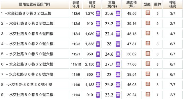 本物件附近地址實價登錄 :