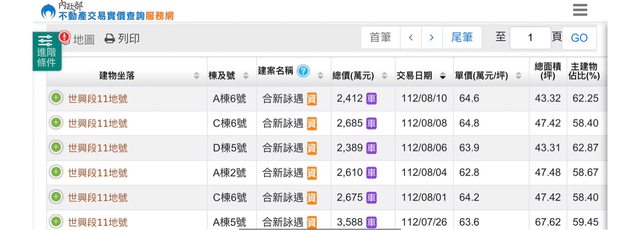 本物件附近地址實價登錄: