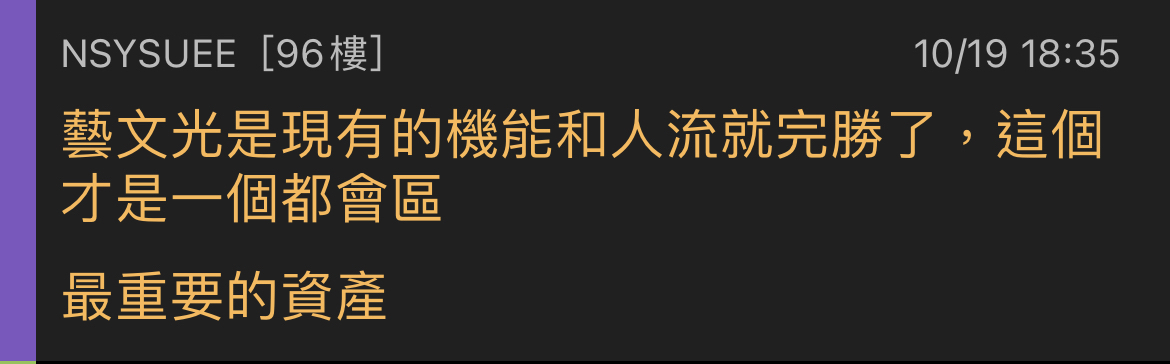 → NSYSUEE: 藝文光是現有的機能和人流就完勝了,這個才是一個都會區 10/19 18:35