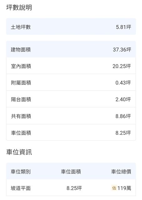 → pilot1982: 中古屋車位價格是隨便人寫得,如果要精準算單坪價位, 10/23 04:17