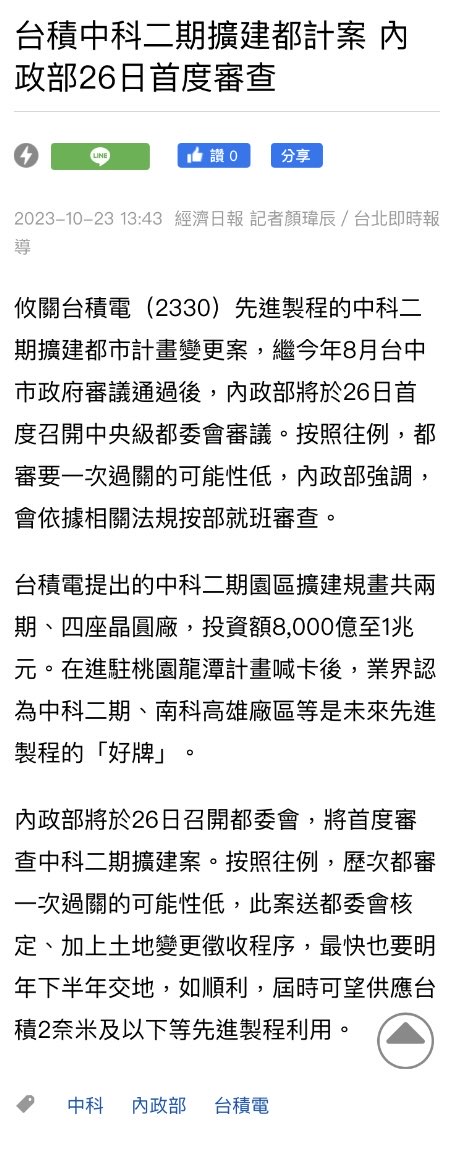 → lionking56: 成土地,較容易出線,中科二期不確定的就是中央審核和 10/24 20:54