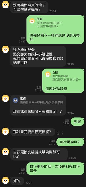 : 2.可否訂定客製化條約,對某些家電(如洗碗機)提供使用,但損壞房東不負責修繕。因