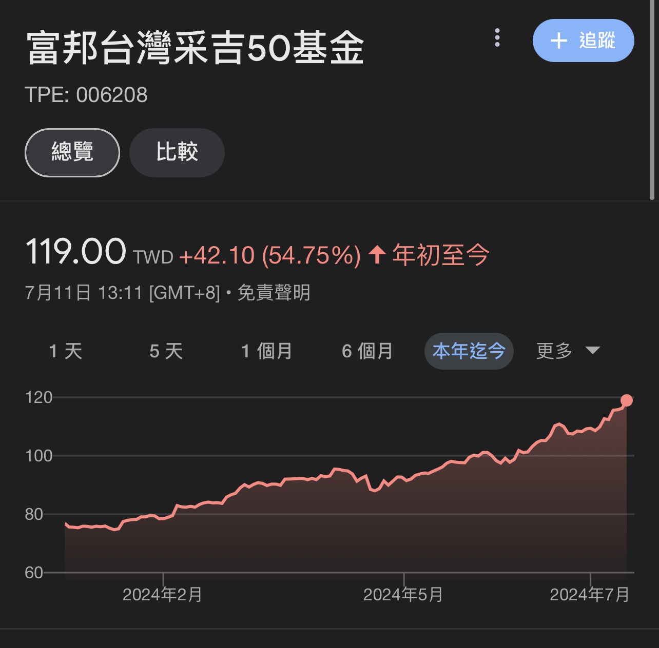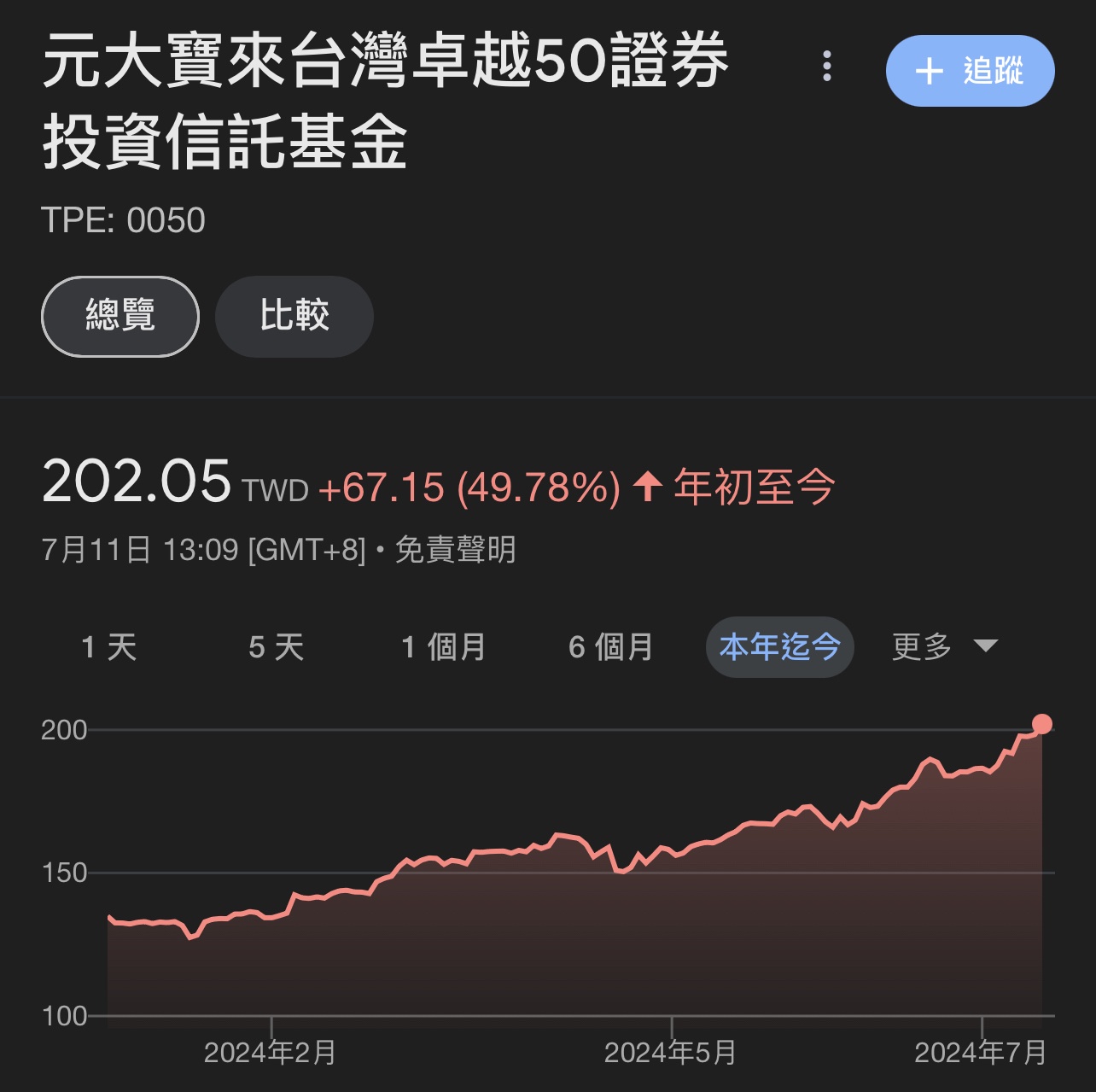 推 BigShotBob: 這三四個月0050也漲了快40% 護國神山漲了50% NVDA漲了 07/11 13:08