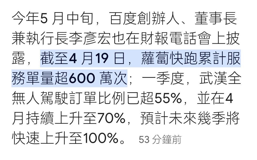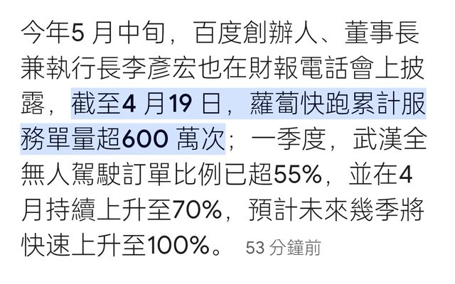 推 kusomanfcu: 自駕車 蘿蔔快跑 已經正在規模化 07/11 19:31
