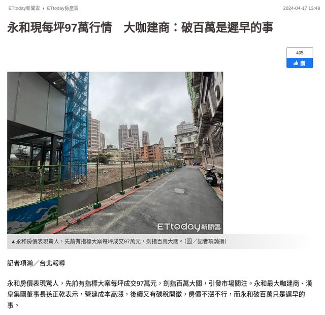→ Bennyhome: 2023年就開始有破百的紀錄,永和其實慢很多 07/22 08:33