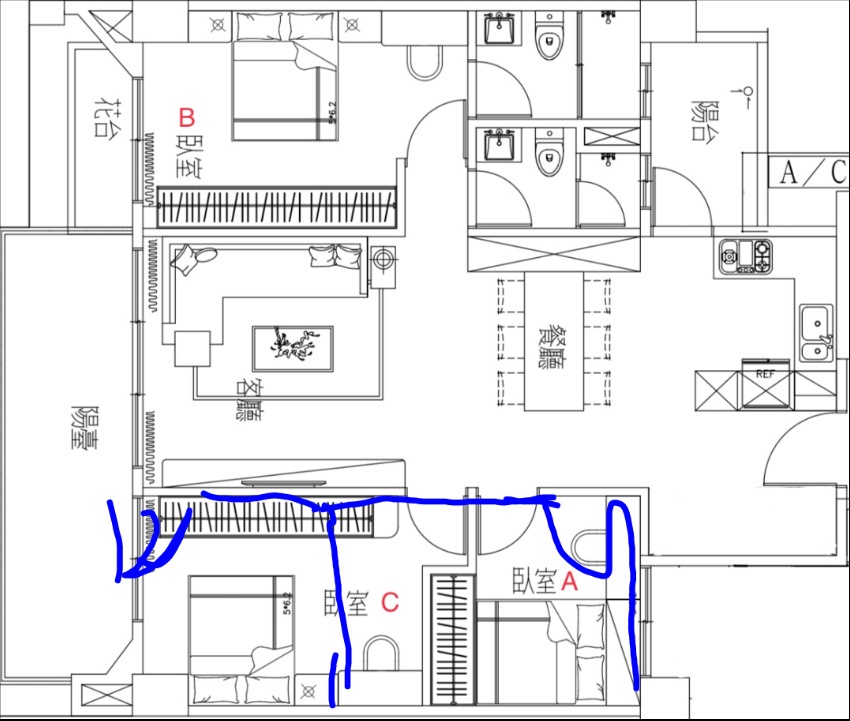 → l98: 如果小孩不大又不想打牆變更格局的話,可以臥室C 先用升降桌 07/30 10:13