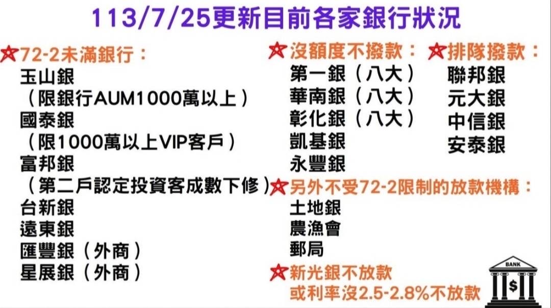 推 ndilavril: 最近很多銀行連老客戶都吃軟釘子 08/01 03:13