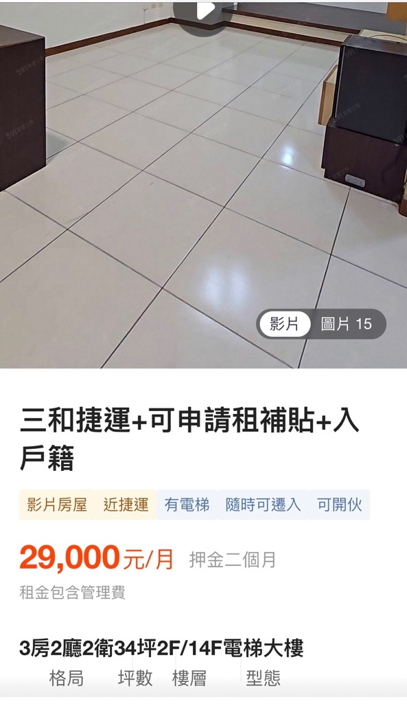推 yufc: 這租金,我們會租在台北市,不會考慮新北舊公寓... 08/01 12:36