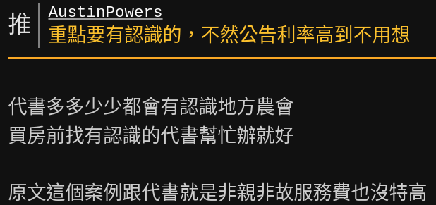推 ruby02162000: 農會超吃地緣跟關係 年初也是被代書推薦農會 結果給 08/01 12:51