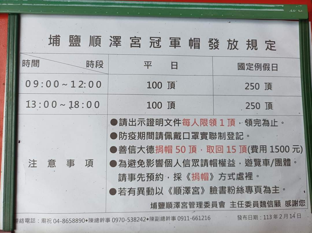 推 kutkin: 就像那個順澤宮帽子 團體是 買100頂可以領30頂08/01 14:27