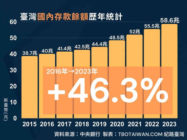 這8年存款只多了46%