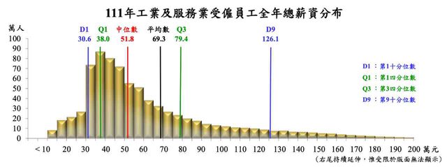 推 master32: 工業與服務業111年年薪中位數52萬耶! 08/04 15:37
