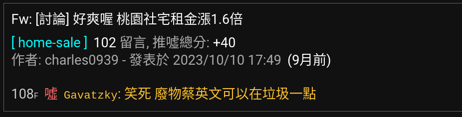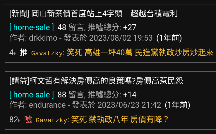 噓 buffon: 你不是最愛帶風向DPP炒房?現在又說要抑制房價? 08/05 17:14