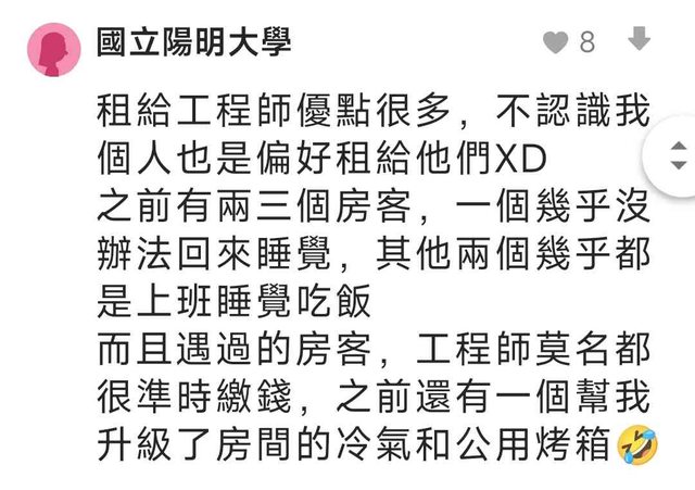 推 vivijj: 真是祝福各位都順利租給工程師了 08/07 19:57