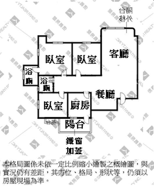 格局 : 3 房 2 廳 2 衛 1 陽台