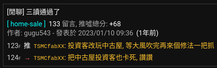 → TSMCfabXX: 而且我講的售屋文他們是賣中古 幾十年大樓開接近預售 08/15 22:48