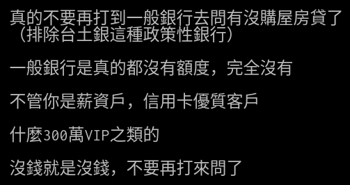 → a45601236qq: 最後一句那個沒錢 跟前面的排除政策性銀行 08/16 07:56
