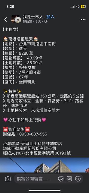 → ceca: "幹,這個租屋代銷仔真的沒買賣過房子耶,超屌" 08/16 09:50