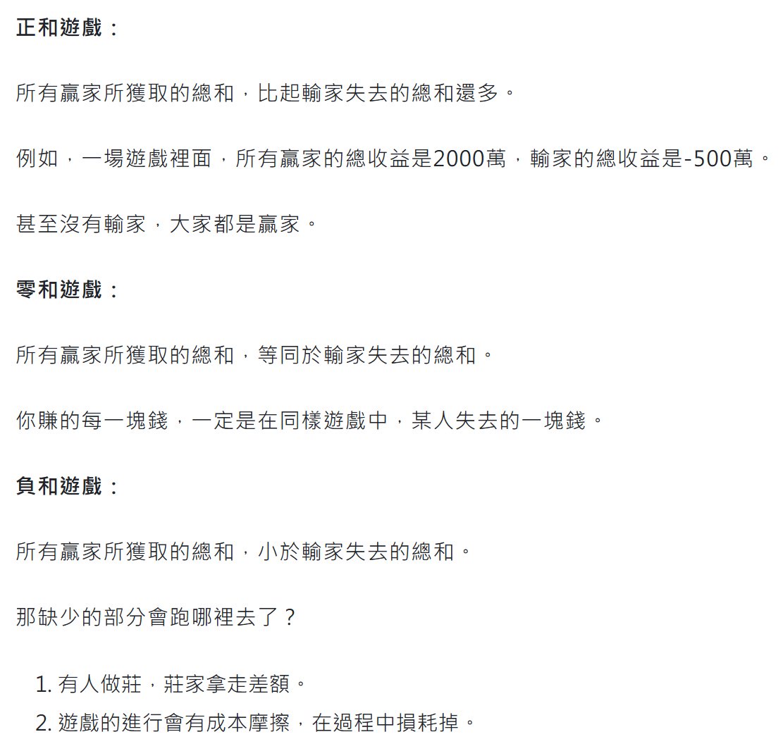 推 PTTMAXQQ: 對,因為正和遊戲的基礎本來就是要漲才行得通, 08/16 11:51