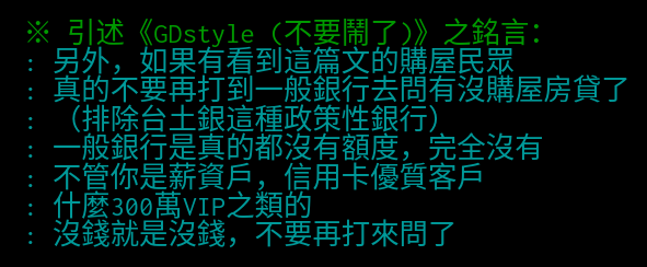 推 littlemonkey: 最近剛好要貸款真的很碰壁 08/16 17:28