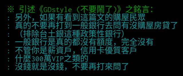 → GDstyle: 難道不是因為沒有額度沒有八成? 08/16 18:25