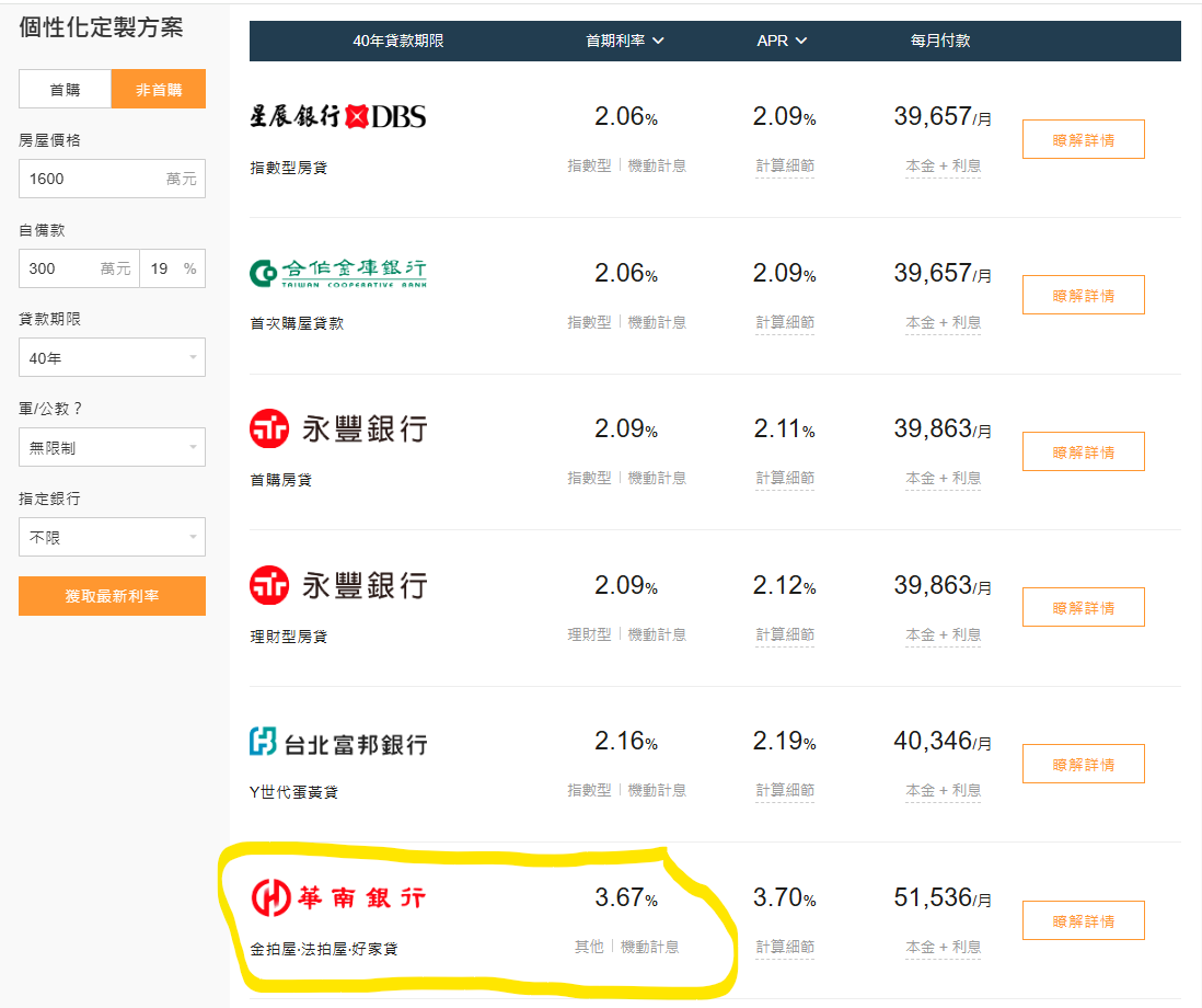 → zebirlin: 房貸計算機裡華南銀直接起跳3.2% 實際核一定飛天 XDDD 08/17 10:12