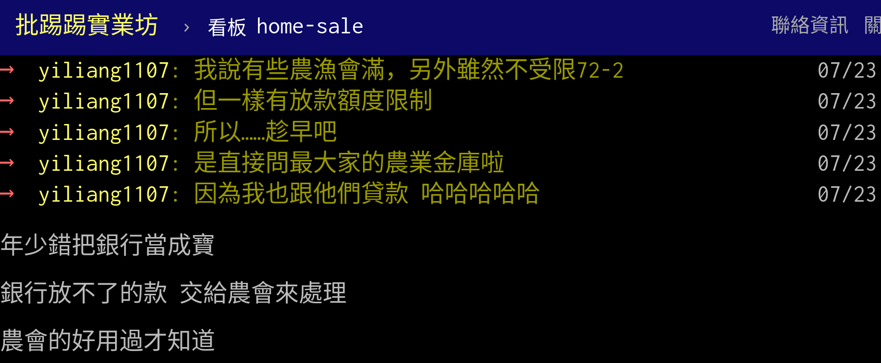 → a45601236qq: 問就是農會好爛 也是我:我也跟農會貸好香嘿嘿 08/17 13:12