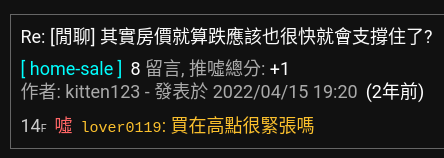 → a45601236qq: 去年被巴爛的看起來還是對買房念念不忘 08/17 13:23