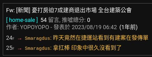 → benchentw: 不好貸出來 代表交易量還是很大 那時候的價差 用民間貸 08/17 17:12