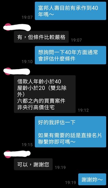 → TAYLOR888: 壽貸的心得。好地段抵押品好應該還是隱啦 08/22 20:32