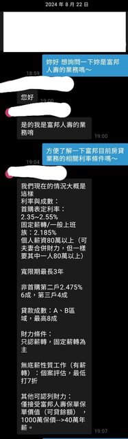 推 dika: 可以請富邦人壽業務找我嗎?有新竹市要首購貸款 08/22 20:31