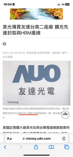 標題[閒聊] 美光傳買友達廠台南科工區