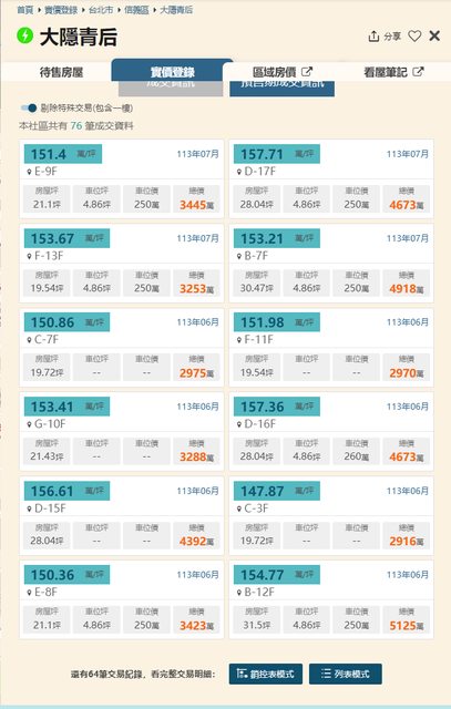 本物件兩年內上一筆實價登錄: