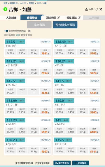 本物件附近地址實價登錄 :