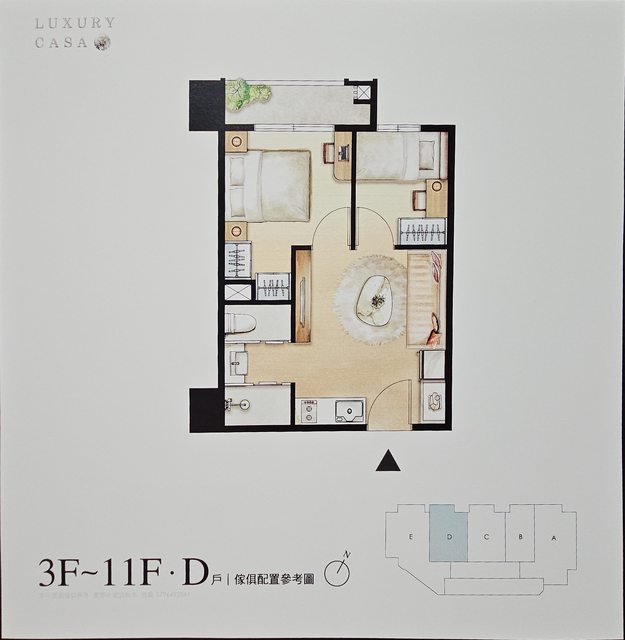 D戶與C戶差別在 D戶沒有一根柱子吃掉空間、沒有電梯出來正對著(有些人會介意)。