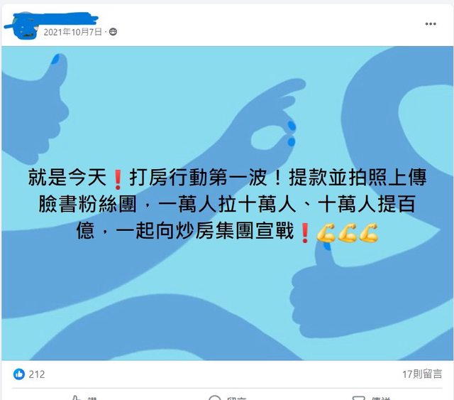 標題Re: [心得] 提款並拍照上傳,一起向炒房集團宣戰!