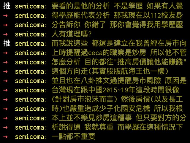 → jl40: 不過他開宗名義就說自己是房蟲 這樣做也無可厚非 09/23 23:28