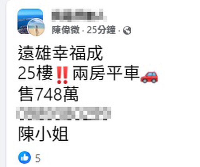 推 mitic1029: 遠雄一期,單價11萬,二房三百萬,目前實登20萬 09/25 15:23