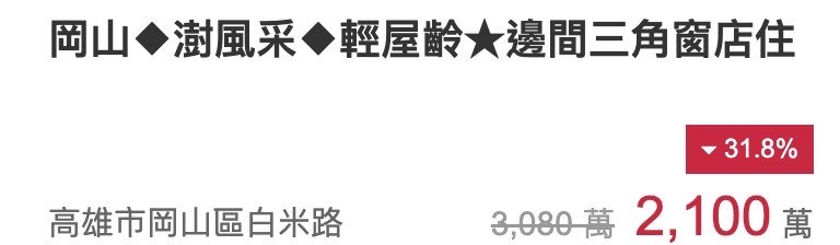 → qoo11931: 2000萬房打個6折,1200萬,頭期200,剩餘青安強力送件 09/26 08:13