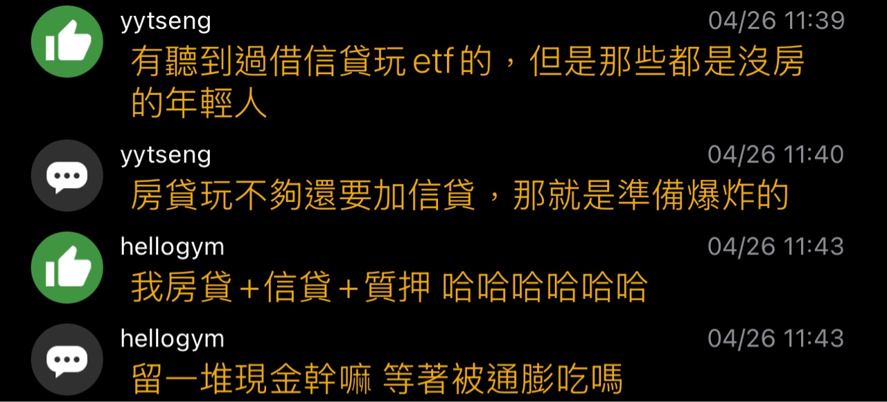 → hellogym: 不然你搜我推文有沒有叫人家房子轉增貸再拿去買房 10/01 12:31
