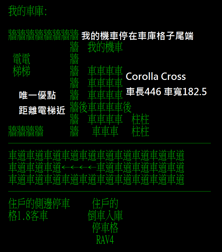 → laechan: 獨立車位沒錯,但車長、車寬都可能會受限像我就無法選RAV4 10/15 08:52