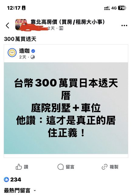 → samwu995: 臉書留言裡面說全世界的房價都是每年下跌,只有台灣相 10/15 13:52