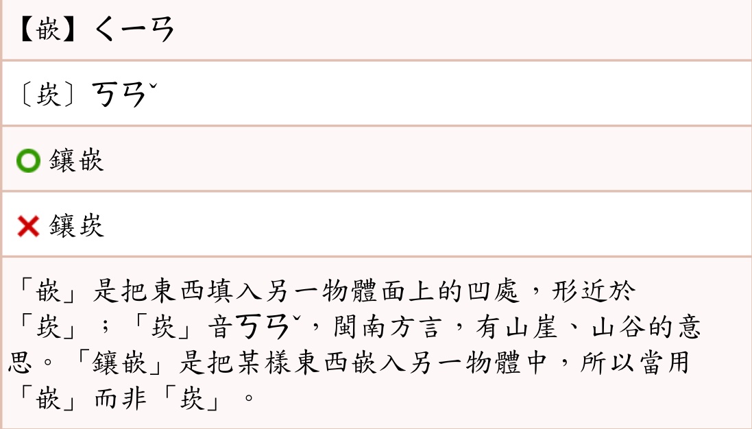 推 a2828z33: 不是自己要積非成是,當然也知道嵌才是正確用法 10/17 09:56