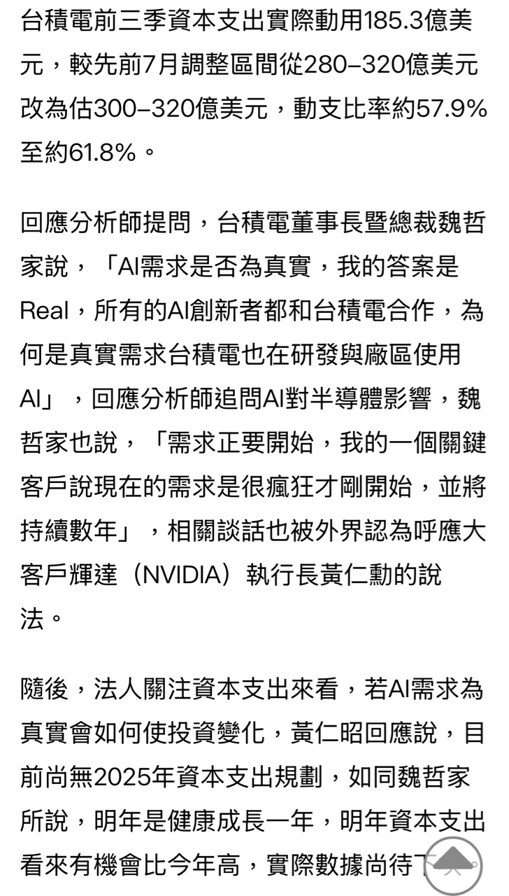 → LINPINPARK: 就看看明天資本支出變出來,要是比2024年高,高機率要 10/18 12:48