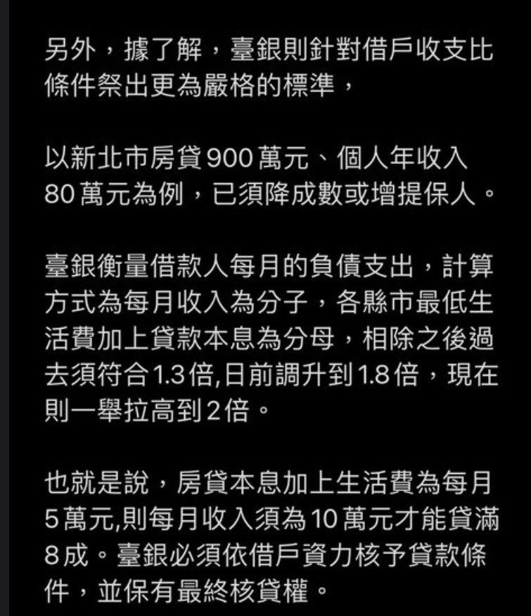 → yiliang1107: 雖然規定上面是第二戶五成,但極大機率被銀行內規砍10/20 15:51