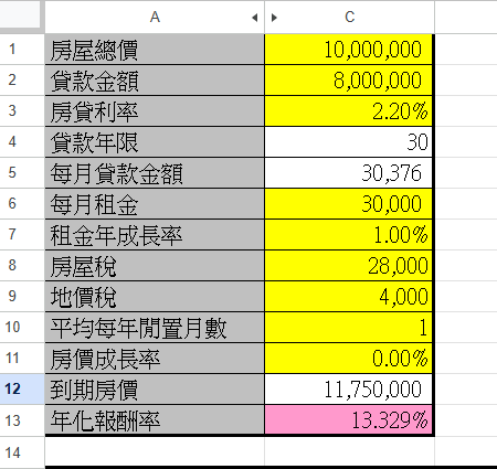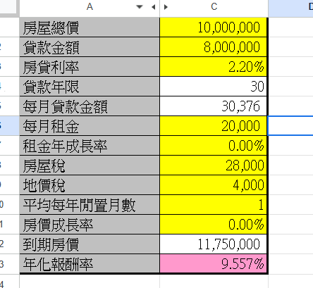 推 EvilJustice: 差不多是這樣,不過這邊房價是用翻倍在算的 10/25 12:53